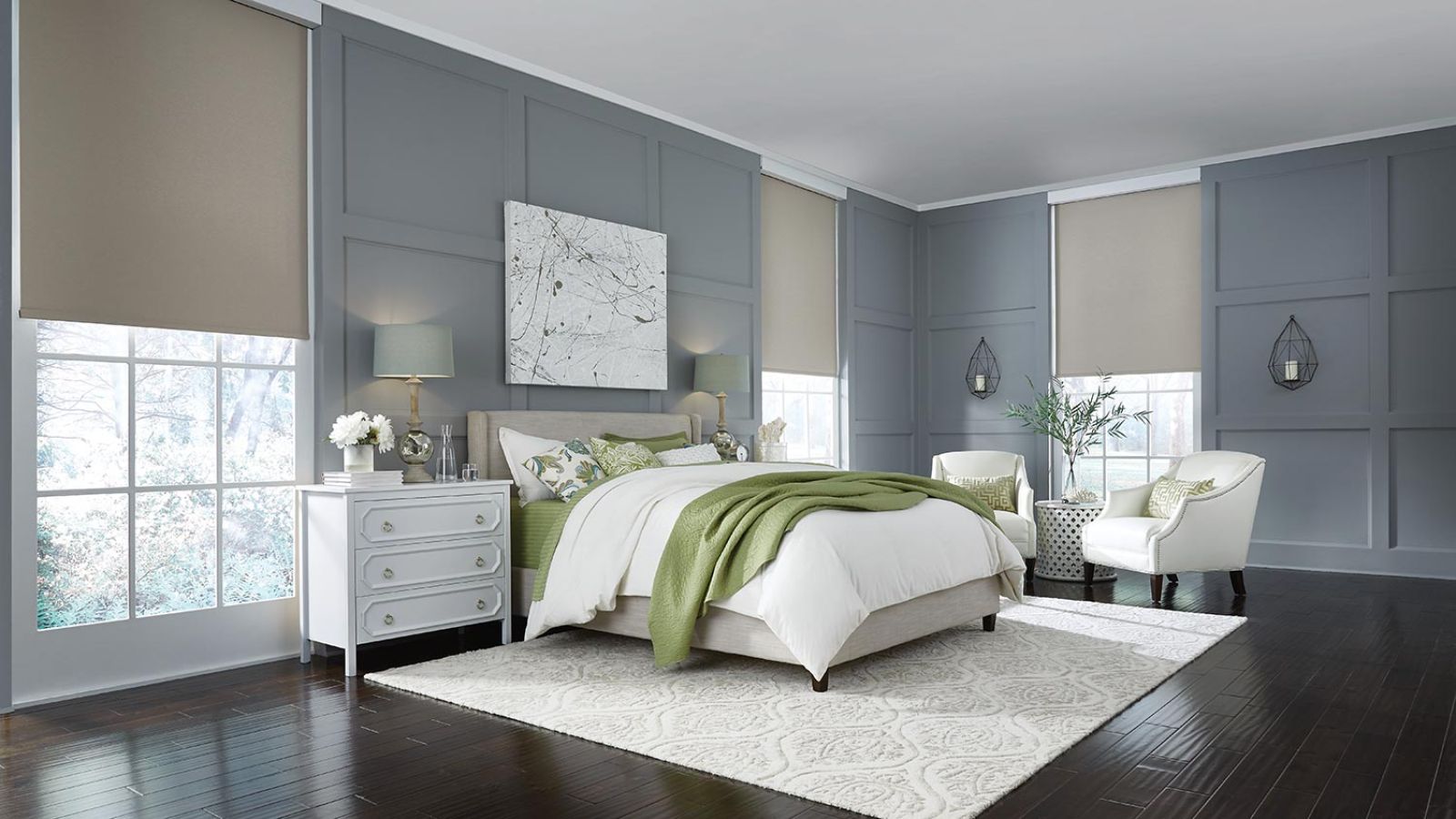 Just tap a button or use a voice command, and your shades respond instantly, quietly, and all at once. You can program them to lower automatically when the sun sets or whenever you activate a certain scene like “Movie Time” or “Goodnight.”